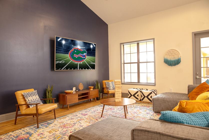 Our amenities don't stop there though, we also have an expansive community clubhouse with pool, Nintendo switch, and comfy lounge seating to catch the latest game or newest episode of your favorite show on our of our many flatscreen TV's! Play a game of pool or grab a Starbucks coffee from our recently renovated community clubhouse area. Our fitness center is unparalleled and like no other in Gainesville with a massive open gym area for spin classes, yoga classes, or HIIT training. We have multiple cardio machines, as well as a weight room with free weights including dumbbells, kettle bells, and barbells! Our fitness center also includes a state-of-the-art rock climbing wall - which is its only kind in Gainesville! You can complete a heavy powerlifting workout or get a quick HIIT training in - whichever your fitness lifestyle, we've got you covered!