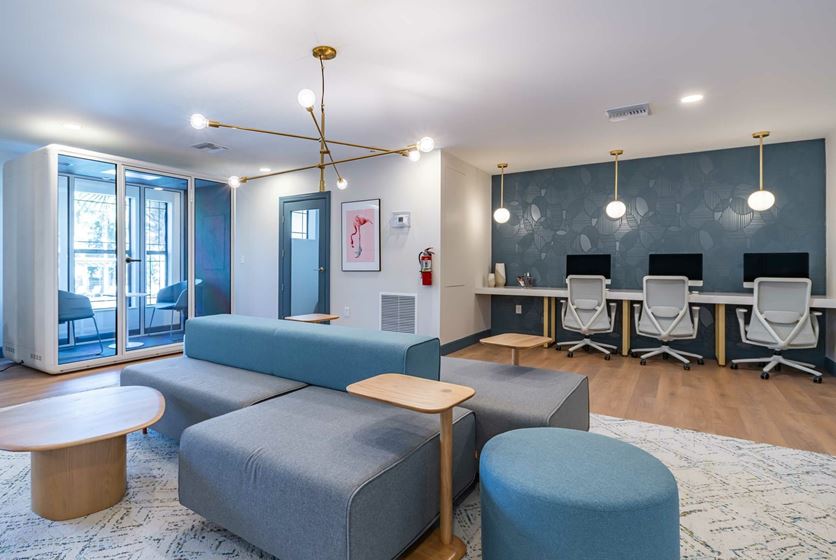 - Stay on top of your studies and your health with 24-hour access to clubhouse amenities like a computer lounge with free printing, a complimentary coffee bar, and a fitness center with cardio and weightlifting equipment.