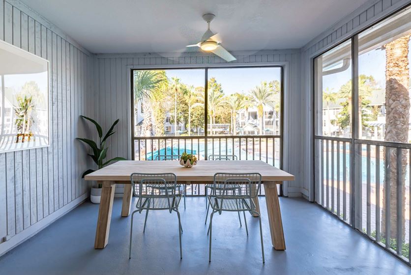 Upgraded apartments offer that extra luxury feel, but all floor plans include awesome features like private bathrooms for every room, full-size washers and dryers, screened-in patios, free cable and Wi-Fi, fully furnished bedrooms with queen beds, and much more to make you feel at home.