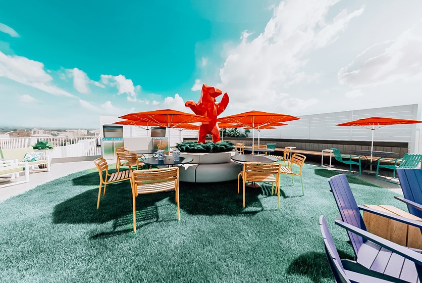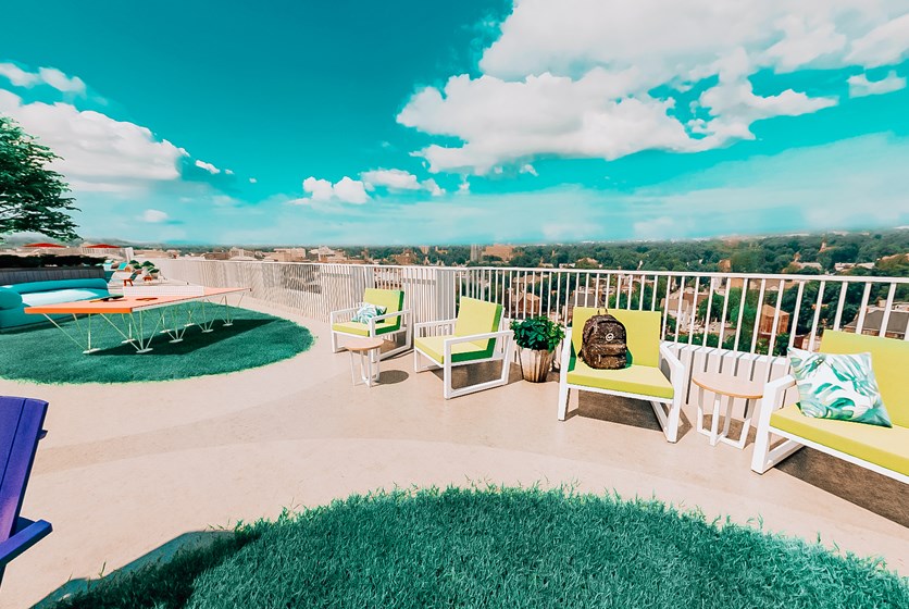 - Enjoy a bird’s eye view of UF Campus and orange & blue Gator sunsets at the rooftop sundeck with pool, hot tub and built-in seating. What more could you ask for? How about a private hot tub - ask about our Mansion floor plans!
