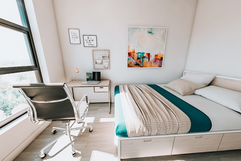 - Enjoy your independence and have access to privacy when you need it. Each bedroom is individually keyed and has solid wood doors, insulated interior walls and blackout shades so you can rest and relax anytime of day or catch a nap between class and work.