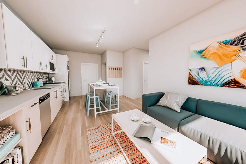 - You will love coming home to your fully-furnished apartment home with custom-designed furniture, wood-style flooring and energy efficient, modern details including USB ports in kitchen and bedrooms, large, openable windows with energy efficient, low-e double pane glass and custom roller shades. Extra perks include full-size washers and 55” HD flat screen TV’s in every living room.