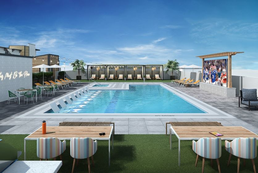 - Rooftop pool with a view of The Swamp and a jumbotron where you can watch the game and stand up and hollar for the Gators even during away games! Zero entry pool features a sun shelf with ledge loungers, gram-worthy grass wall, shaded daybed cabanas and jacuzzi spa.