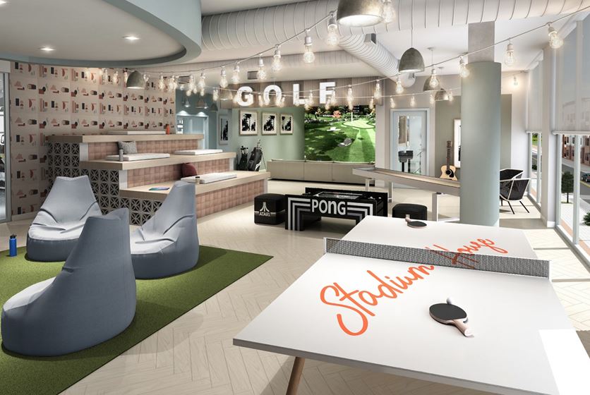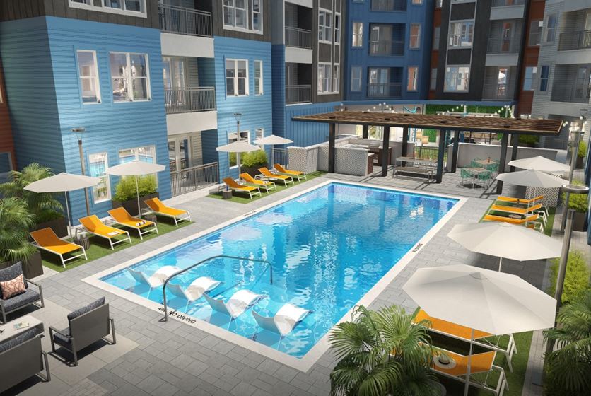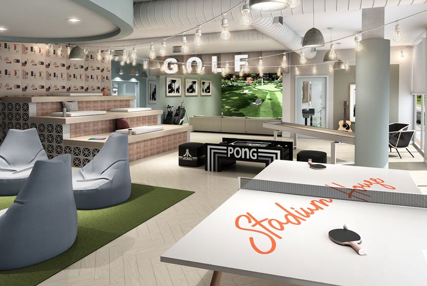 - Enjoy the outdoors in all kinds of weather year-round with access to 2 resort style pools! Courtyard pool with in-pool ledge loungers, trellis covered outdoor kitchen picnic area with market lighting, 2 BBQ grills and several cozy lounge spots for studying. Entertain friends at the clubhouse featuring a stadium seating gaming room, ping pong, foosball, shuffleboard, TV lounges, and karaoke!