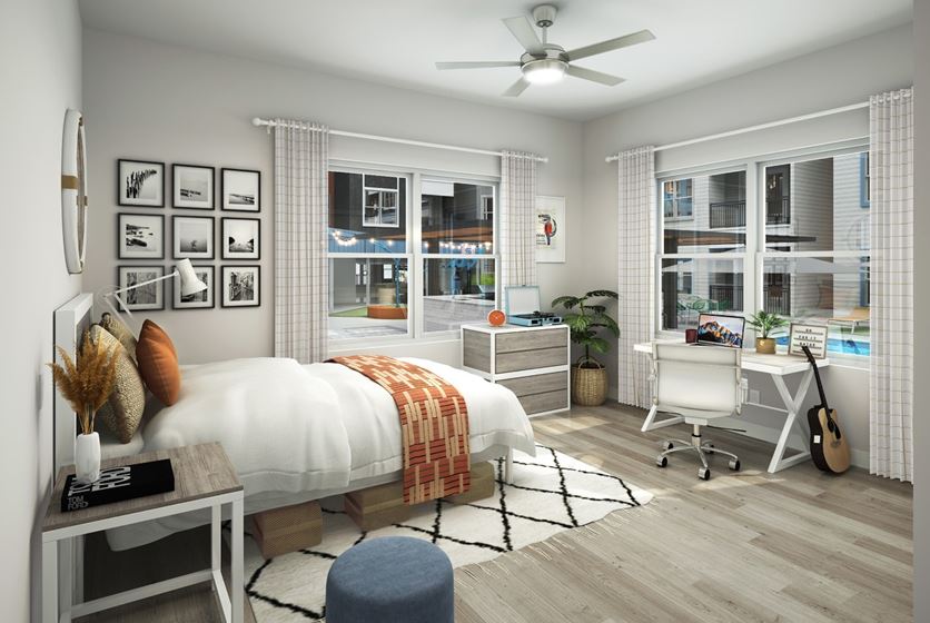 - Tech savvy apartments feature remote controlled ceiling fans in living rooms and bedrooms, 55" 4k Smart TVs, and continuous WiFi from the clubhouse to your room so you'll never lose connection if you need a change of scenery while studying.