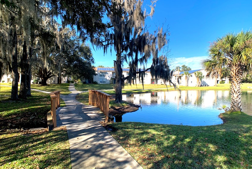 Apartments feature fully equipped kitchens and private bathrooms for each bedroom so you don't have to share with a roommate! Get to the UF campus or UF Health Shands within minutes with access to multiple RTS bus routes (free with your Gator1 ID). This community is also just 4 minutes from Butler Town Center boasting Gainesville’s newest upscale shopping, dining, and entertainment options. In your free time, relax poolside, mingle with your friendly neighbors at resident events, get your workout in at the fitness center, or knock out some work in the business center with free printing. Residents enjoy unique perks such as jogging paths and scenic waterside picnic areas perfect for studying or relaxing.