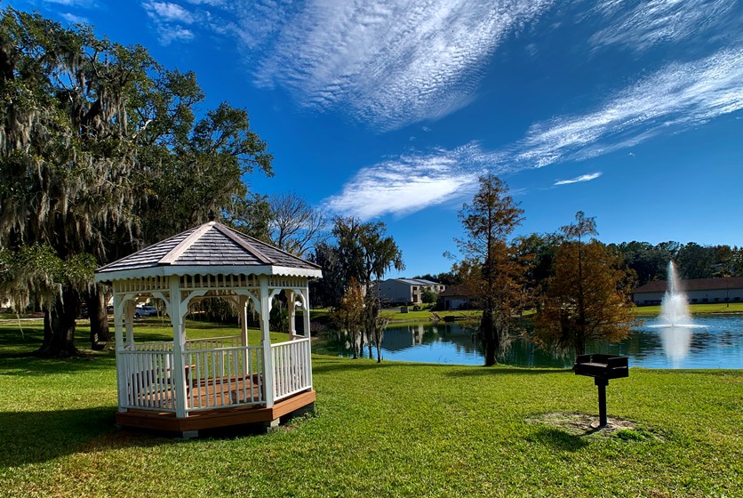 - Enjoy Florida weather year-round! This 33-acre community offers a refreshing swimming pool, open green space (perfect for daily walks with your four-legged friend), a pond, a gazebo, and even a grilling space perfect for away games on Saturdays.