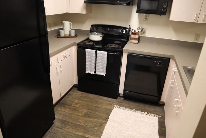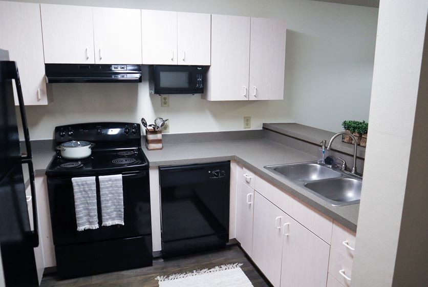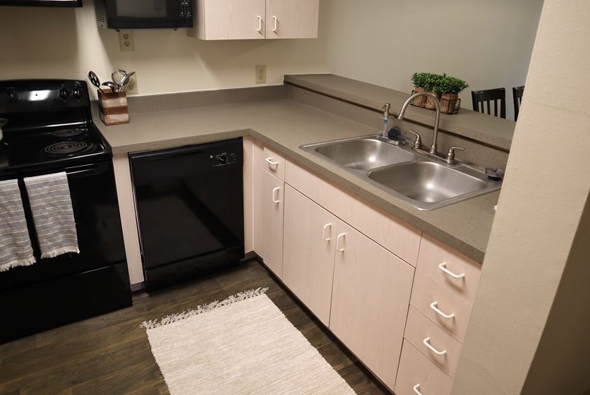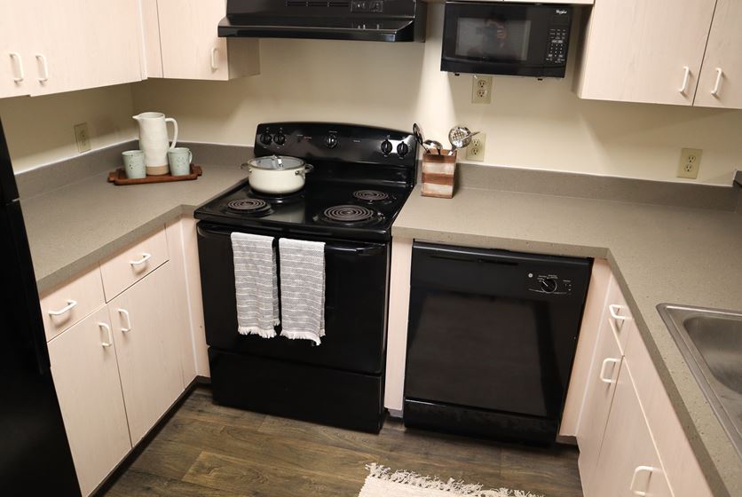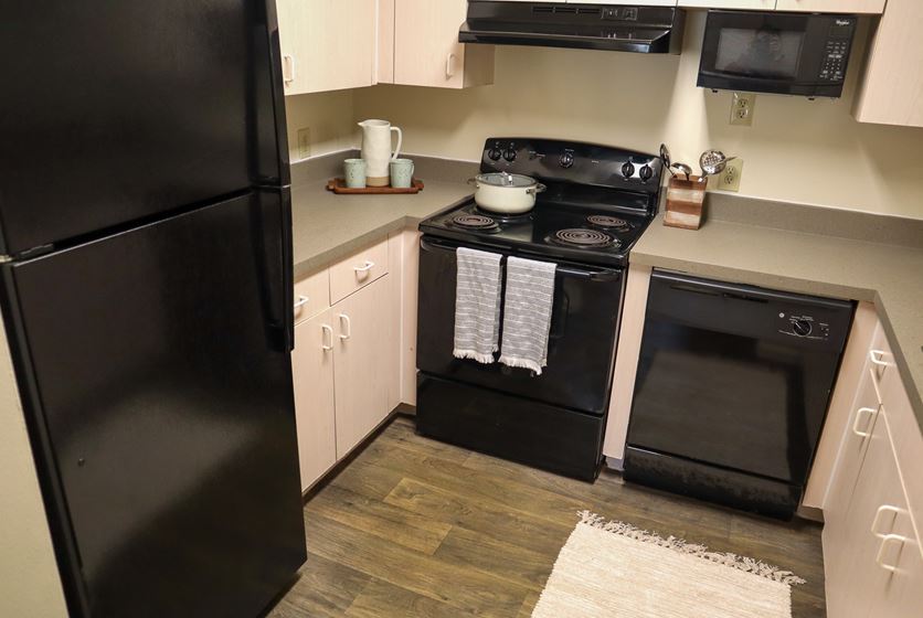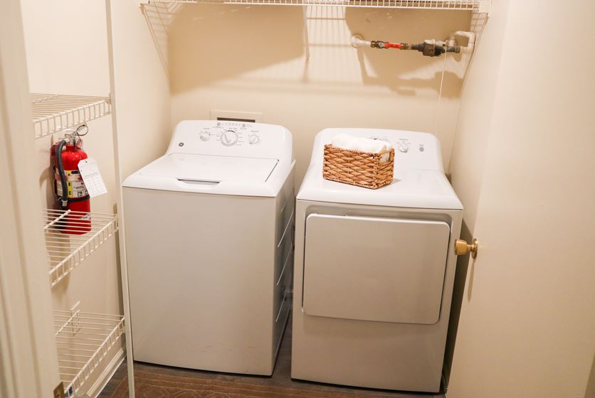 - Kitchens come fully equipped with a microwave and dishwasher. Plus, you'll have a separate laundry room with full-size washer and dryer in select units providing extra storage space and the convenience of tackling the chore of laundry at home.