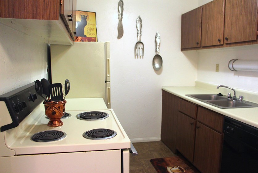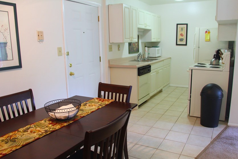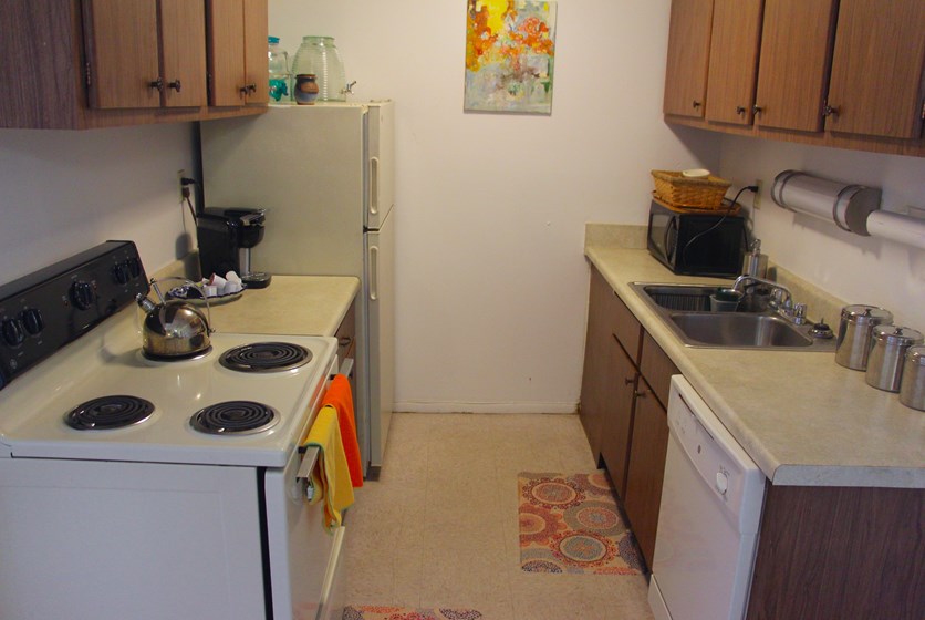 - Kitchens come fully equipped with appliances including dishwasher and garbage disposal