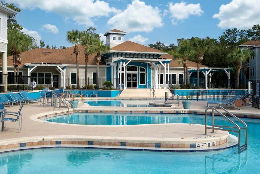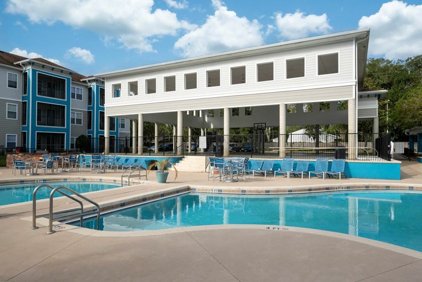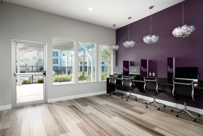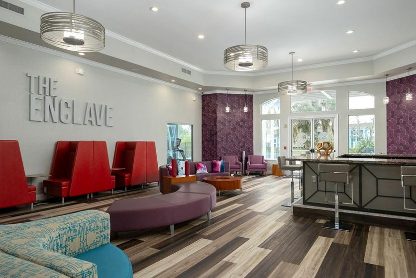 The Enclave, pronounced "on-clave," is a French word meaning "a unique dwelling distinct from the territory that surrounds it". True to this definition, this community provides residents with a unique living experience through top-notch customer service and amenities. As unique as its namesake, the Enclave provides a welcome change to the status-quo of apartment living in Gainesville. Placed in a convenient location just 2 miles from campus and within walking distance from great shopping and dining selections, The Enclave is the new number one choice for college rental living in Gainesville! The Enclave features a new resort-style beach-entry pool, with a pool-side bar and grill! If it's raining, don't sweat it - enjoy free tanning, sweat it out at the 24-hour gym or shoot some hoops at the covered basketball court.