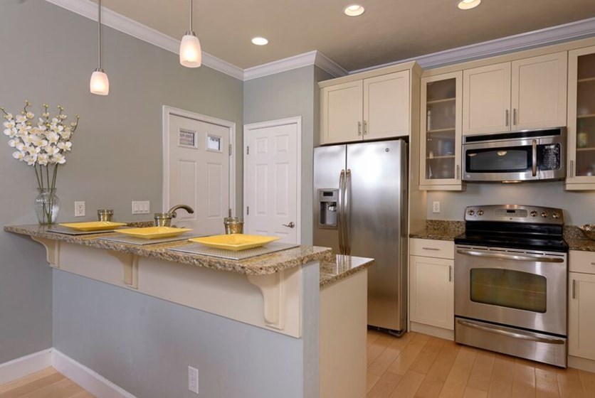- Cook in style with stainless steel appliances, quartz counter tops, modern cabinetry, and a kitchen island in many floor plans for added cooking space!