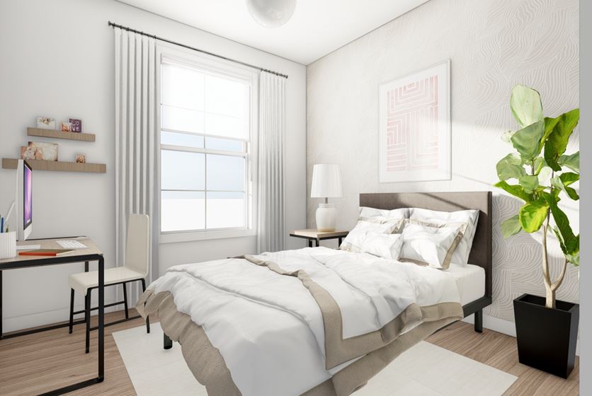 - Spacious floor plans include large bedrooms with plenty of room for a king-size bed or a study space and private bathrooms in most bedrooms.
