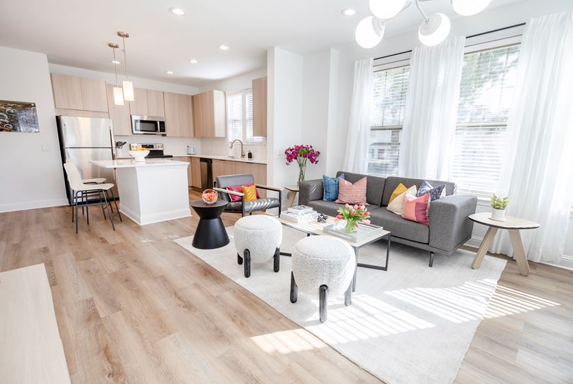 - Modern floor plan features include sleek wood-style flooring, upgraded fixtures, and open-concept design.
