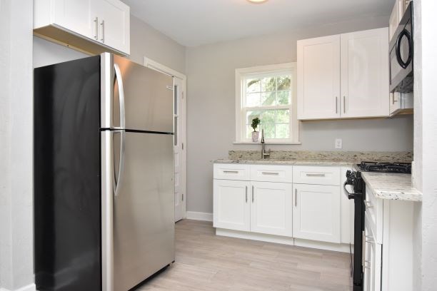If you're looking for apartments with charm, look no further! These homes were built in 1947 and for the keen eye, you'll decorate around refinished original wood floors, new tile flooring, and upgraded light fixtures. A modern touch is added with brand new cabinetry along with gleaming granite countertops and stainless steal appliances in the kitchen.