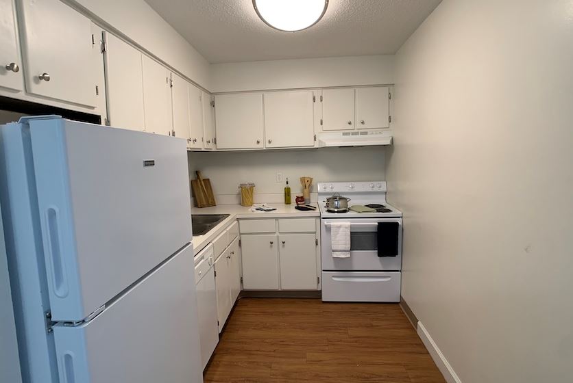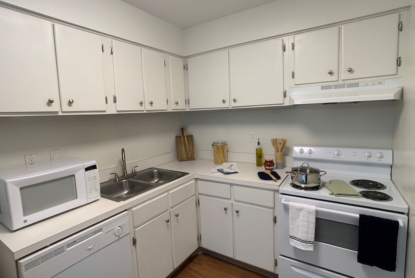 - Host a dinner party with friends and whip up a gourmet meal! All apartment kitchens are equipped with a dishwasher, fridge and garbage disposal. Towne Parc's appliances all come in a stylish white perfect for pairing your favorite accent colors.