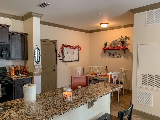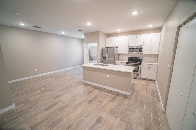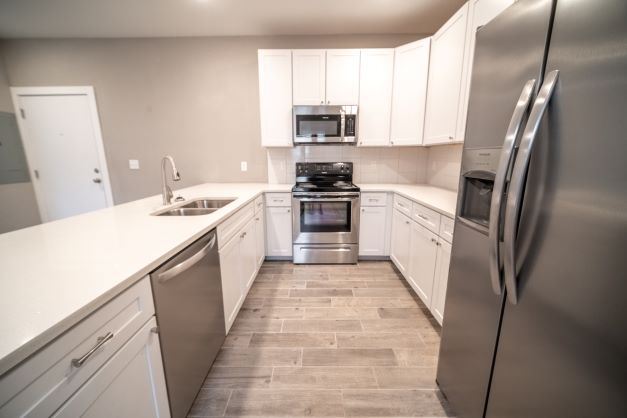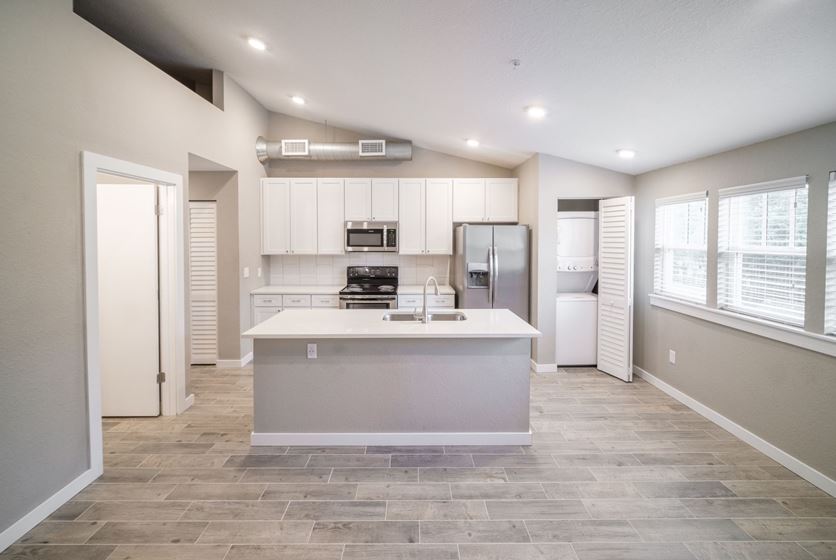 - Be inspired to cook at home in your beautifully upgraded kitchen with quartz counters and premium cabinetry. Kitchens come fully equipped with a dishwasher and disposal. Enjoy a breakfast bar and walk-in pantry available in select units.