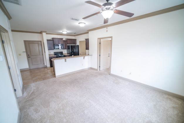 - It's all in the details with features like 9-foot ceilings, crown molding, 2-inch plantation blinds, and ceiling fans with LED lighting. Ask the team about your flooring options with carpet, tile, and wood floors available.