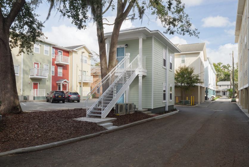 - Located across the street from UF, live steps from all your favorite spots on and around campus. Walk or scoot to class and Sorority Row in a breeze. Head to Fourth Ave Food Park or the Innovation District in less than 2 minutes.